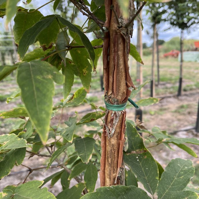 Driebloemige esdoornEen esdoorn die je niet vaak tegen komt, mooi afbladerende bast en vrij langzaam groeiend met een goede herfstkleur. kan uiteindelijk toch wel 10 meter hoog worden. houdt van een wat zuurdere bodem.