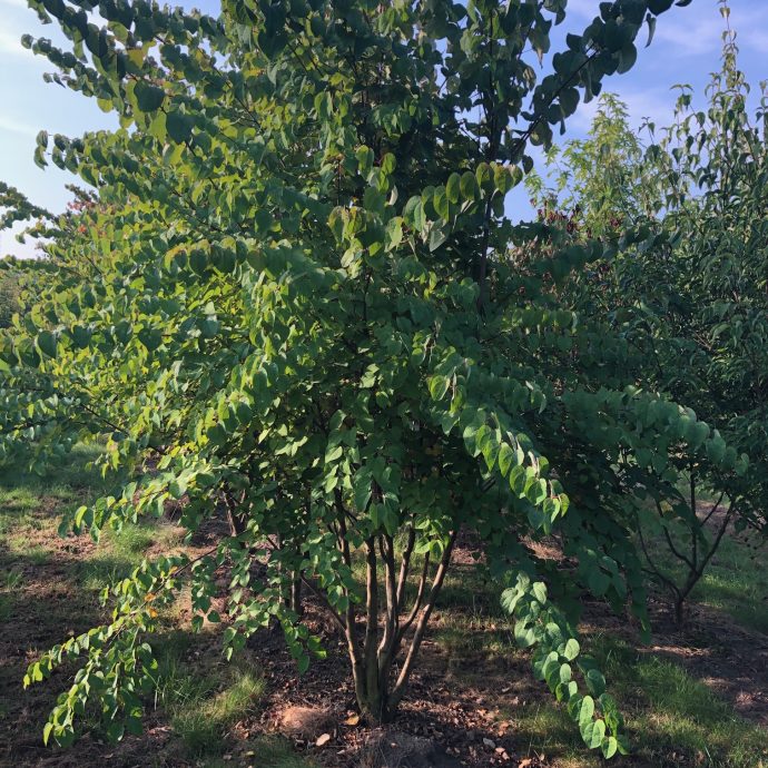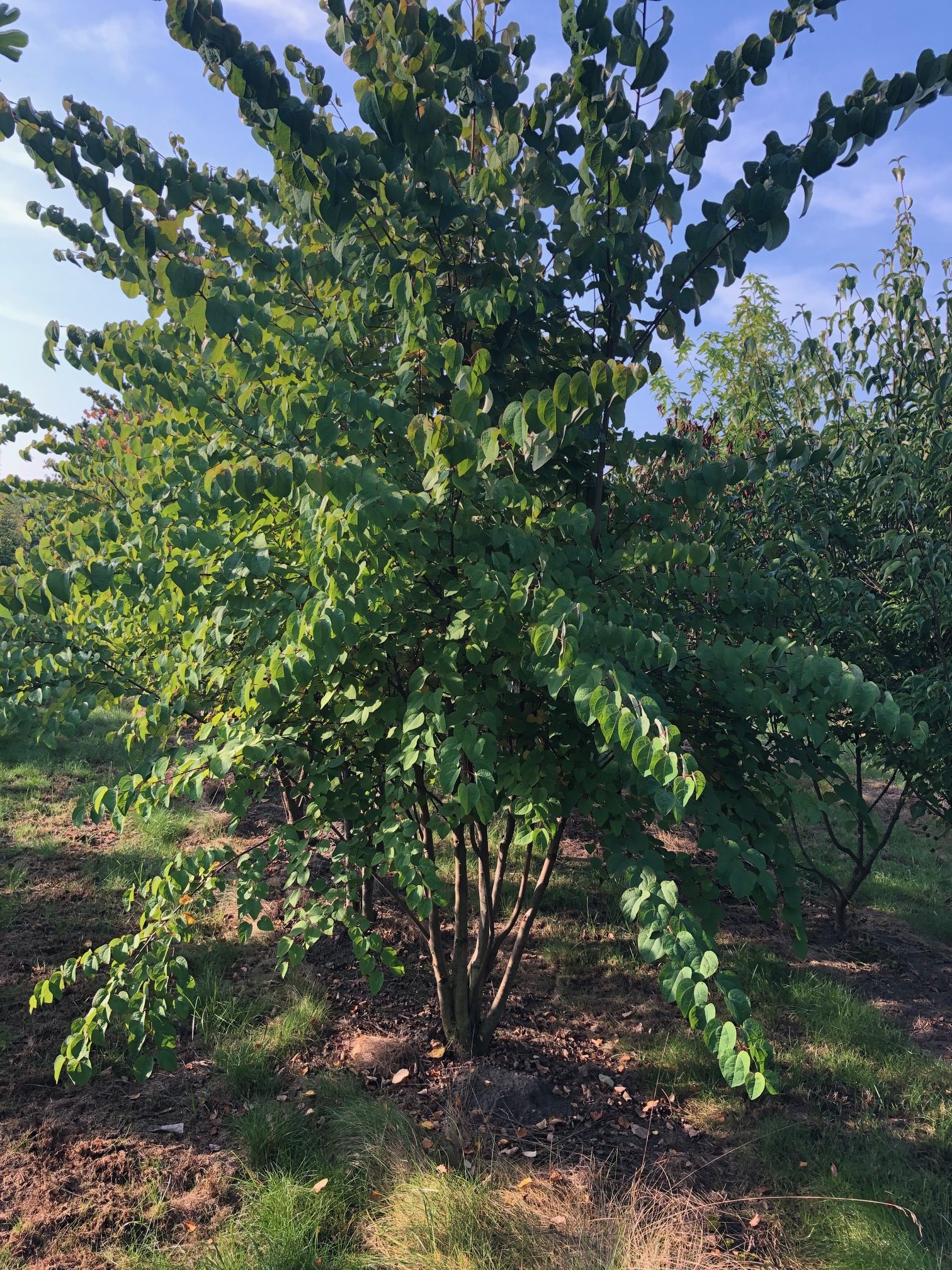 Katsuraboom, koekjesboommooie boom, rustige groeier maar haalt toch wel een hoogte van 12 meter. wanneer het hartvormige blad valt geurt dat naar koekjes. de herkeuring die hier aan vooraf gaat is zeer goed.