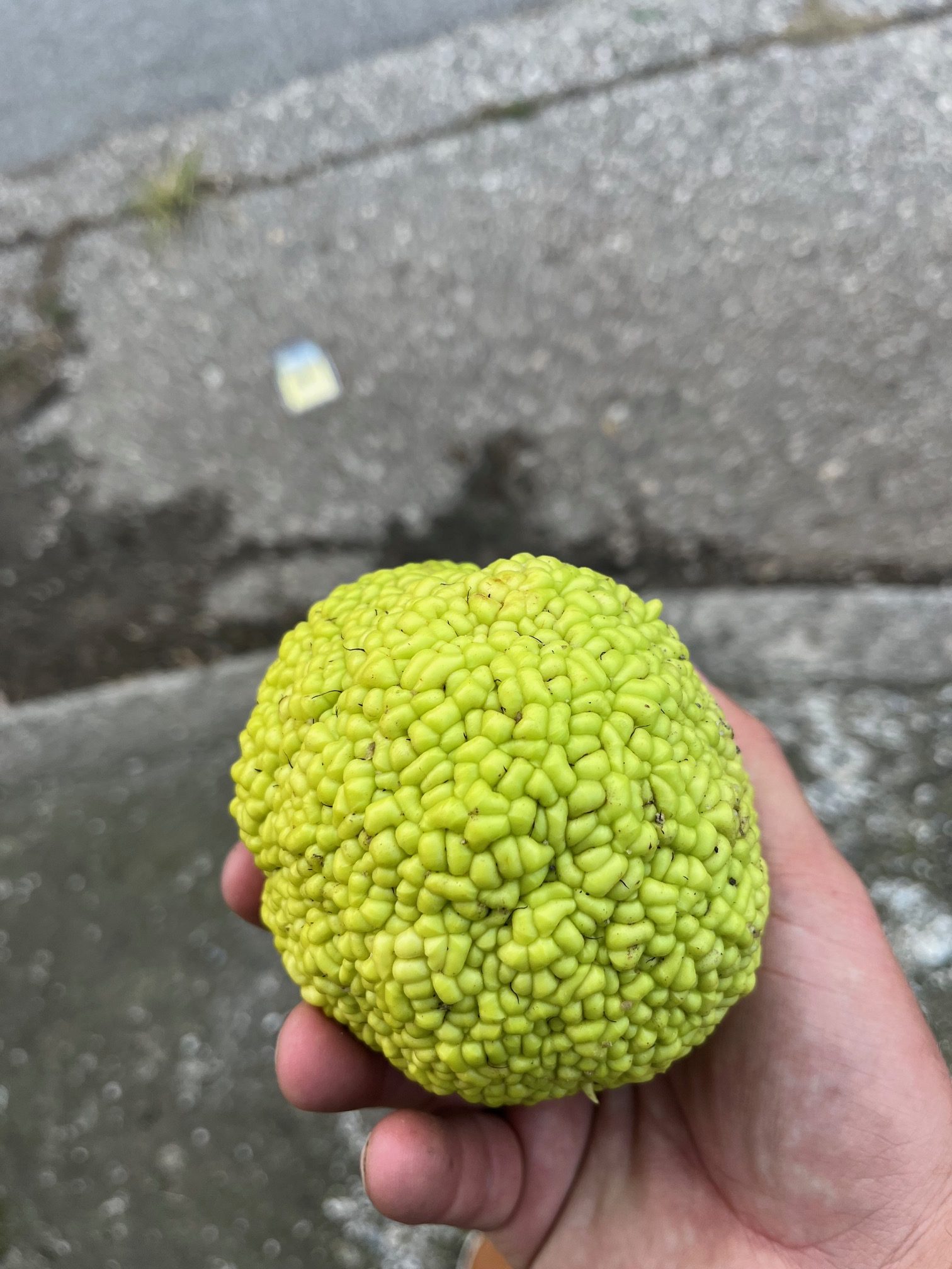 Osagedoorneen cultivar zonder doorns en grote vruchten die opvallende gevormd zijn. de indianen maakten van het hout hun pijl en boog. tot ongeveer 10 meter hoog en ruig/wild gevormd.