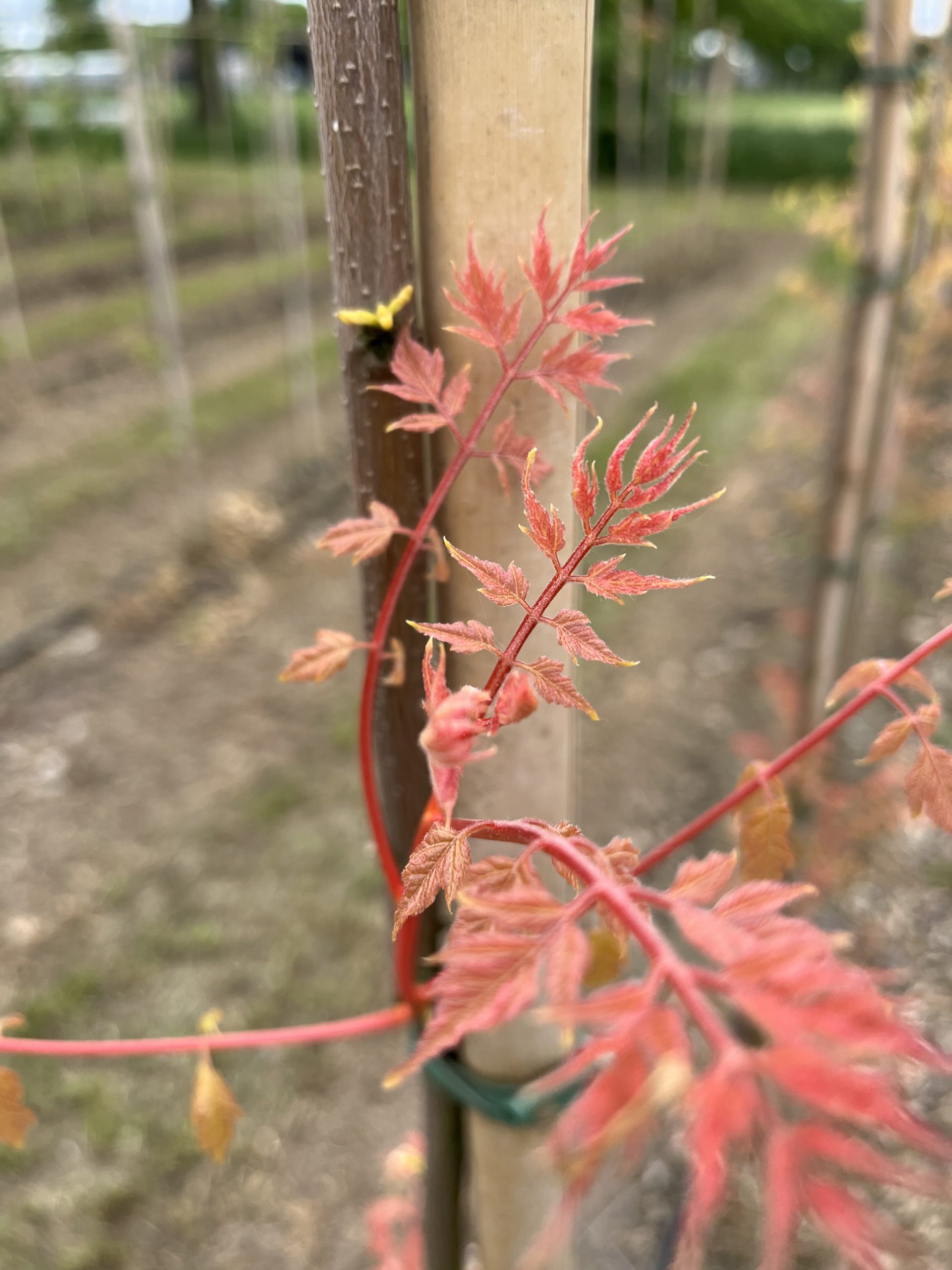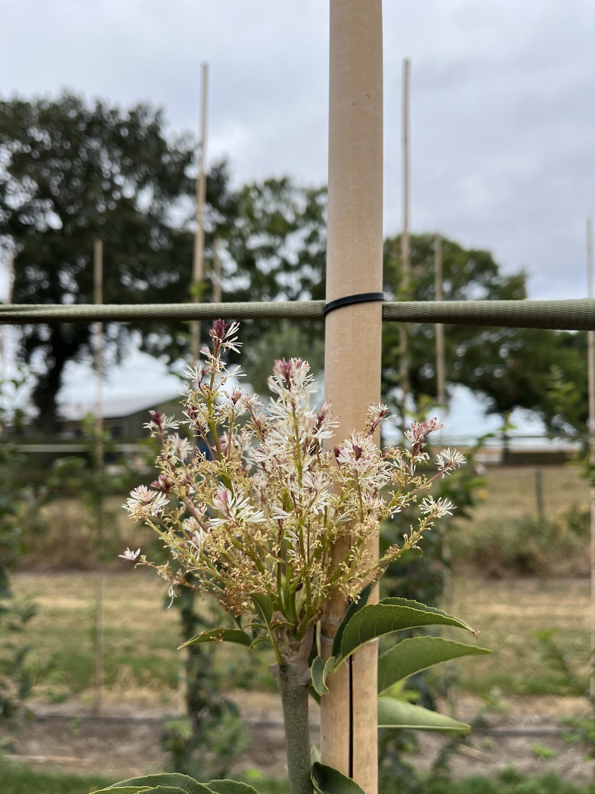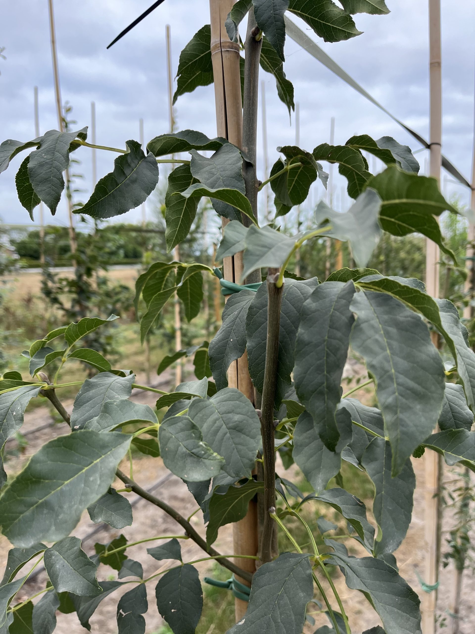7; laat het jute en draadkorf om de kluit tijdens het planten, alleen draden dicht bij de stam doorknippen en wegvouwen van de stam.
