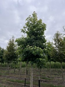 Snoei deze bomen altijd terug op de zware gesteltakken die gevormd zijn door de kweker. Het is aan te raden om 2 keer per jaar te snoeien om zo de vorm het mooiste tot zijn recht te laten komen. Wanneer je een parasolvorm hebt kun je de bovenkant vlak snoeien, vaker snoeien zorgt ervoor dat het sneller compleet dicht is door een fijnere vertakking.